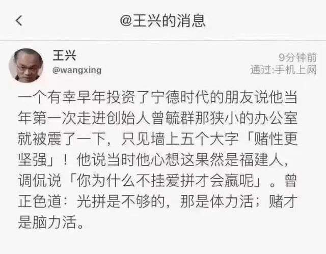王兴谈曾毓群“赌性更坚强”,图源王兴饭否