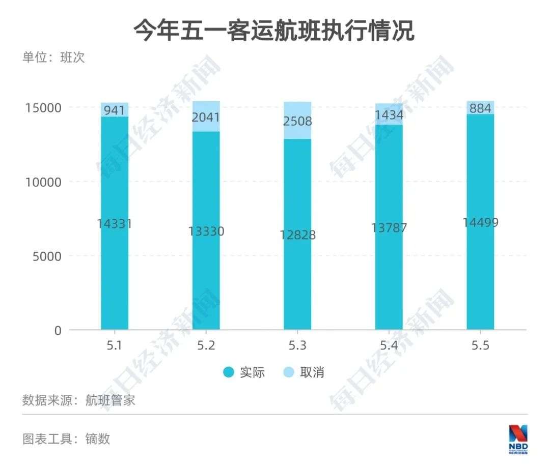 总结来说,今年“五一”小长假,民航运输量大幅高于去年,与2019年同期基本持平。