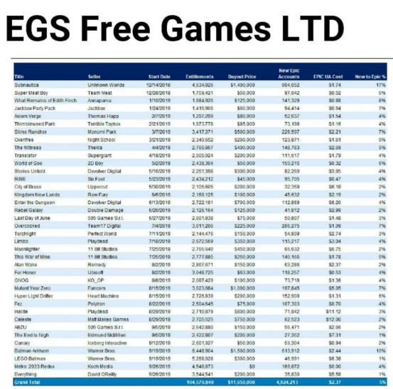 更低的分成、限免、独占、保证金买断……EGS的发展本质上就是让利赚用户。文件显示,截至2019年10月,Epic Games Store获得的1850万用户中,只有7%的用户付费购买游戏。2020年EPIC投入大约4.44亿美元,用以签订EGS的独占合作协议。举个例子,Epic以150万美元买断《蝙蝠侠:阿卡姆合集》,领取用户中新增为61.39万,约等于新增获客成本为2.44美元。