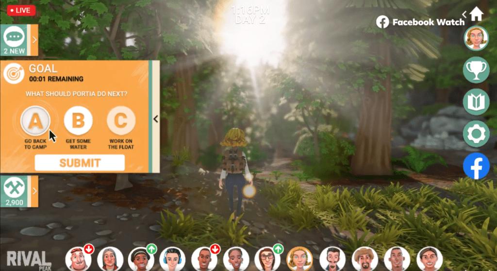 Rival Peak在Facebook上的观看者可以通过投票实时对角色进行指导。资料来源:Facebook