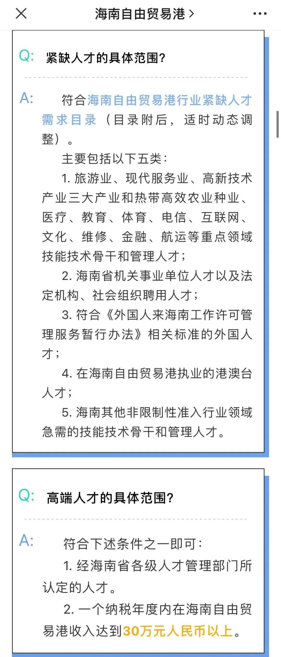 海南自贸港官方账号对于紧缺人才、高端人才的介绍。文件可参考《海南自由贸易港享受个人所得税优惠政策高端紧缺人才清单管理暂行办法》、《海南自由贸易港行业紧缺人才需求目录(2020年版)》