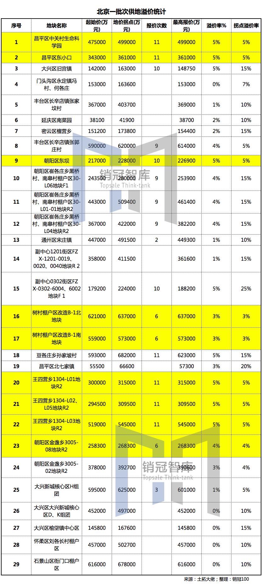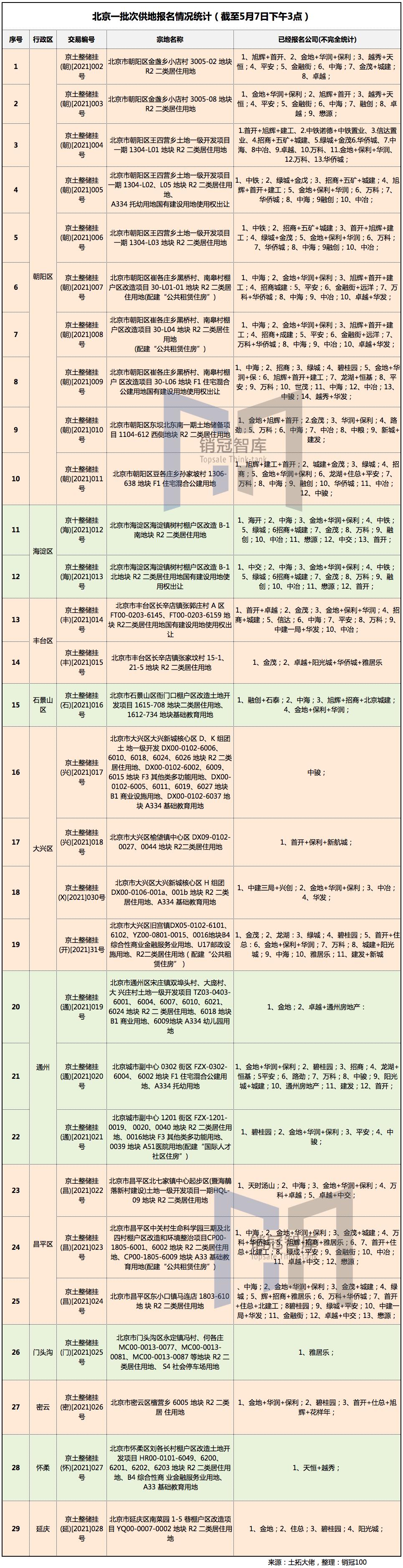 1、从29宗地块的报名情况看,北京一批次地块不会出现流标了。