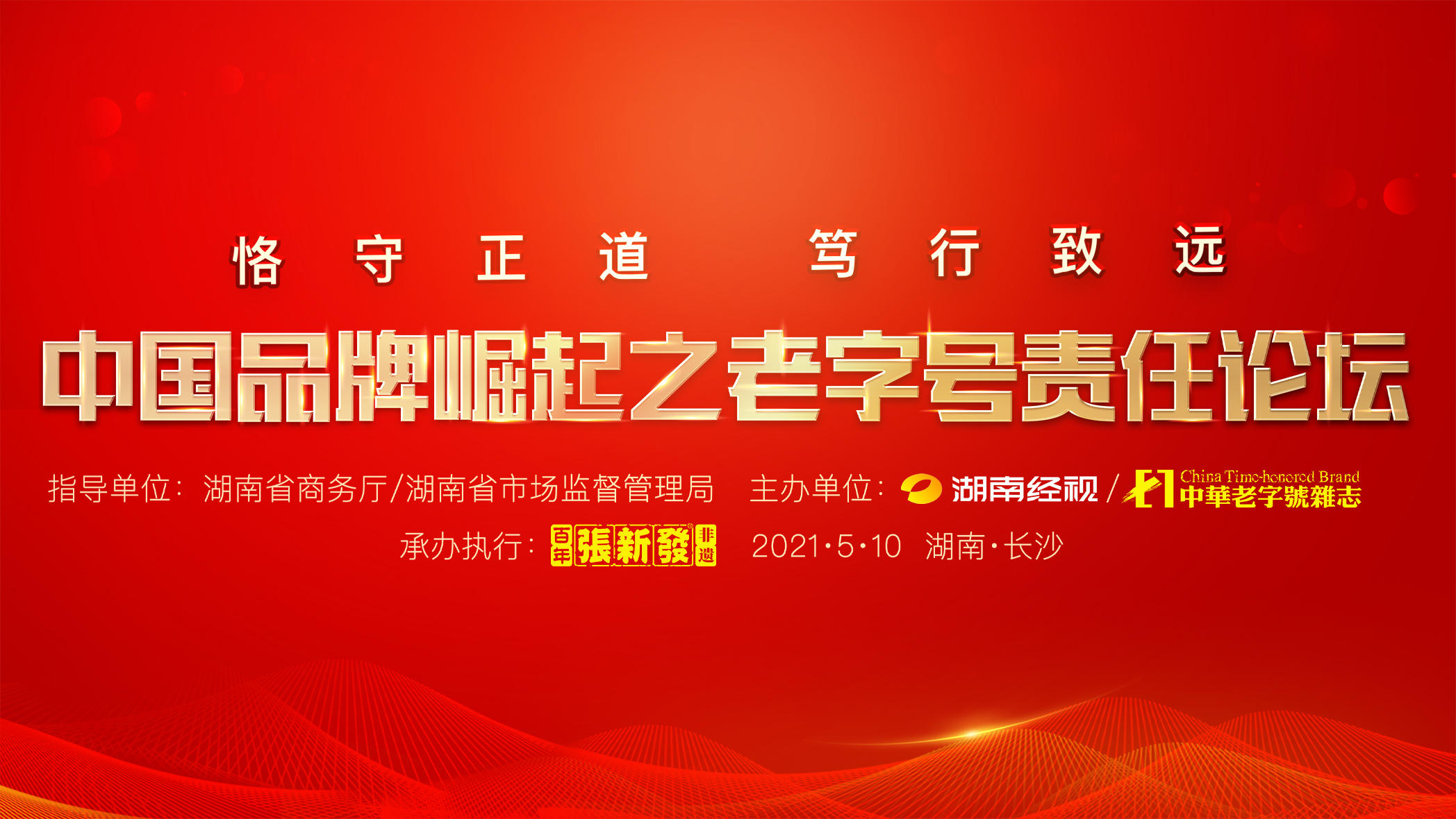 论坛由湖南广播电视台经视频道、中华老字号杂志社主办,湖南省商务厅、湖南省市场监督管理局全程指导,百年张新发承办,恒源祥、稻香村、九芝堂、火宫殿协办。