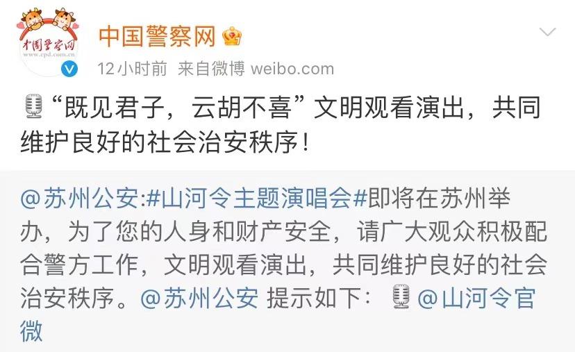 如果说游客素质参差不齐、现场秩序能否井然有序,全靠“自觉”;那么《山河令》演唱会举办方早早的提前部署,则属于有备而来。早在五一到来之前,《山河令》主办方就已早早联动当地公安、交通部门,为观众发放“注意安全、配合警方办案”,以及开通“机场往返奥体中心直通车”公交;演唱会现场,主办方大麦网,则在显眼处拉起“君不负我,诈骗犯负”、“山河不足重,重在防诈骗”等趣味横生的横幅,以便降低游客深陷人身财产诈骗风险,#山河令演唱会防诈骗横幅#也登上当天微博热搜。