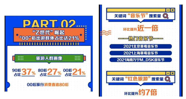 大盘强势上涨背后,市场旅游趋势也在发生相应改变。最明显的两大趋势是:其一,今年五一旅游主力人群已经从过往的中年人群逐渐转移至90、00后,其中00后占比21%;其二,除去过往适合亲子项的旅游景区依旧火爆外,音乐节、人文考古成为今年五一旅游热关键词。