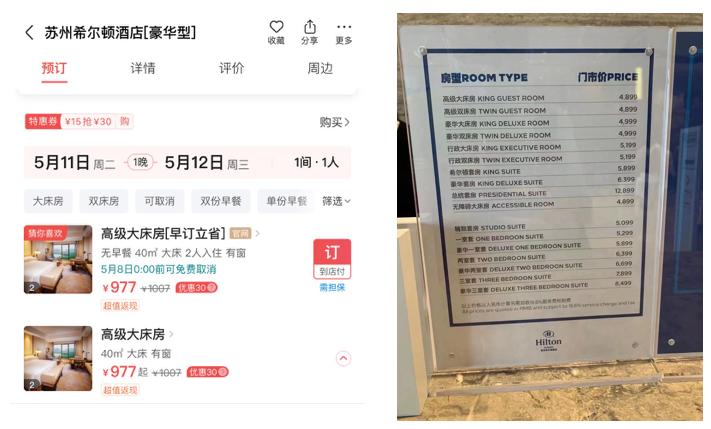 (《山河令》演唱会期间 苏州希尔顿酒店房价vs日常房价)