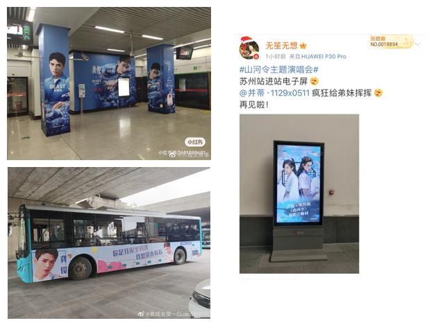 据苏州本地《山河令》剧粉透露,《山河令》演唱会前夕,苏州二号线地铁站内、地铁内的视频播放器,以及部分公交车上,全部印有“两位主演或《山河令》演唱会海报”,以便最大限度的推广“演唱会”受众面积。而苏州公安、旅游局网,也多次发布与“《山河令》演唱会”有关的动态,令粉丝感动。