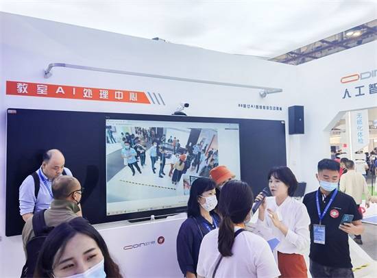 以星际探索主题而设计的欧帝展位(C4-004)吸引了众多观众到访,现场热闹非凡。其中,本次展会发布的人工智能校园解决方案尤为吸睛,标准型智慧教室、多屏互动智慧教室、培训教室、智慧党建体验区也挤满了前来参观的观众。工作人员详细地讲解、演示,让观众对各解决方案和产品有了更深的认识。现场精彩的互动活动将展会气氛推向高潮。