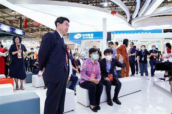 欧帝科技精心的展会筹备以及领先创新的产品方案体系,得到了政府及展会主办方的关注。中国关心下一代委员会副主任田淑兰女士及中国教育装备行业协会领导一行,莅临欧帝科技展台参观指导。欧帝科技董事长周雪松先生参与接待,并介绍了最新推出的人工智能校园解决方案。