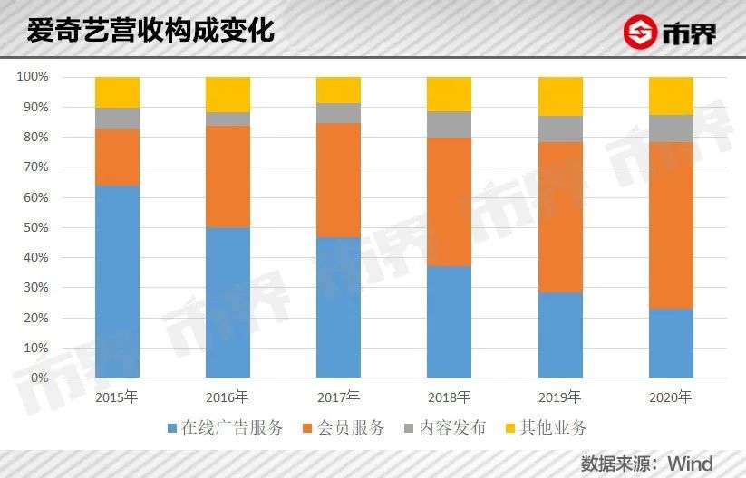 2020年,爱奇艺的会员收入为165亿元,内容成本为209亿。而从2018年开始,会员收入首次超过广告收入,成为爱奇艺的主要营收来源。或许这也是爱奇艺急吼吼地要涨价的原因。