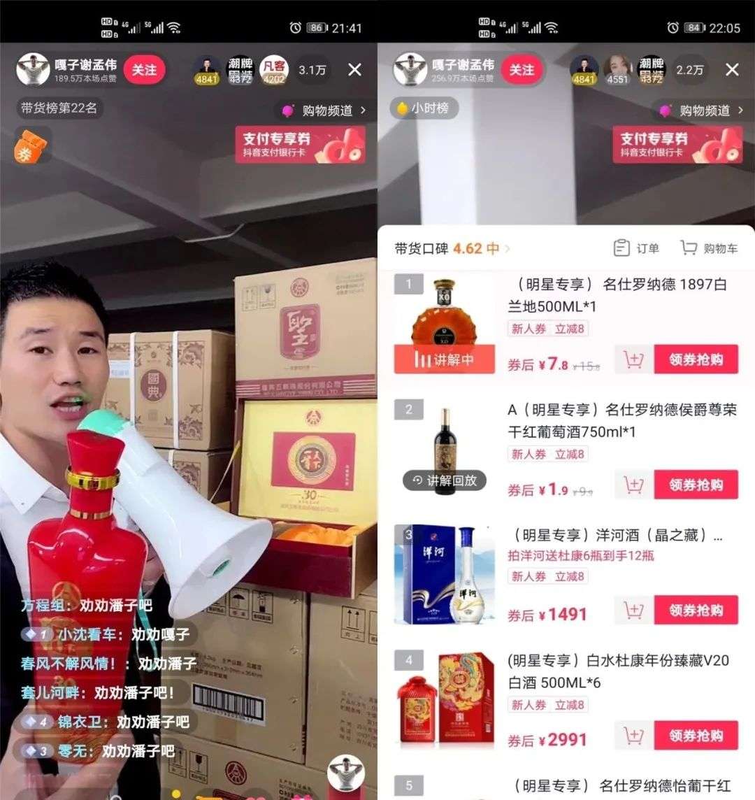截至今日发稿前,谢孟伟直播间的商品橱窗所有酒类皆已下架。