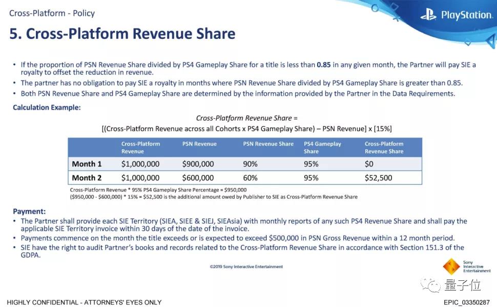 本次Epic提交的证据中还透露了索尼的跨平台收费政策。