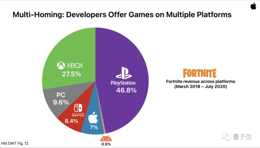 苹果调查了《堡垒之夜》的收入组成,出人意料的是,索尼PS平台接近一半,而来自苹果的只有7%。