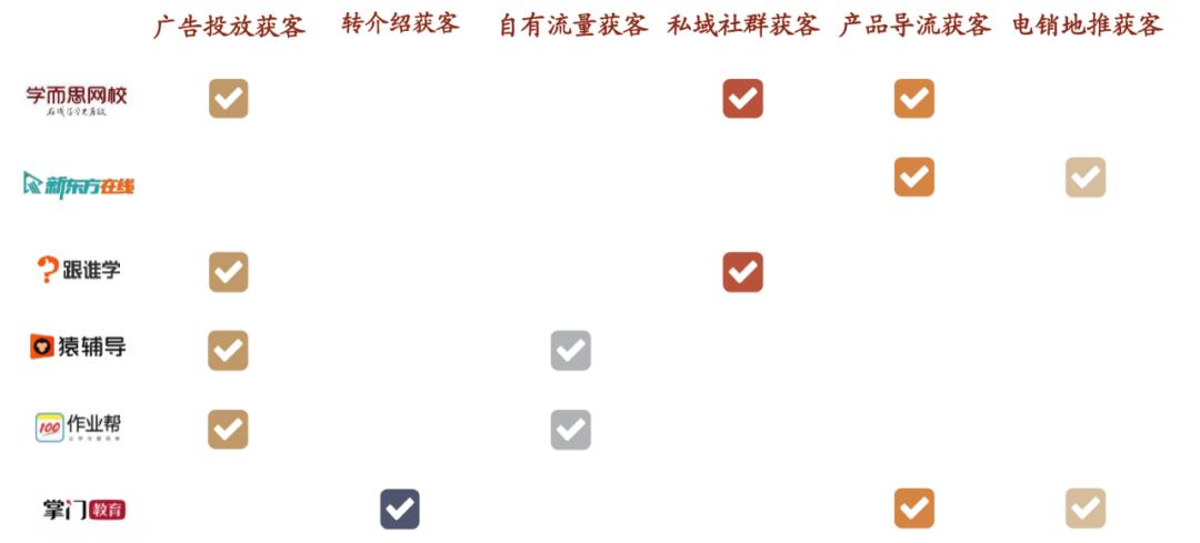 图5:部分在线教育培训机构获客侧重方式对比,来源:中金公司研究部