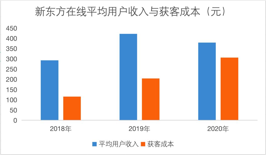图9:2018年-2020年新东方在线平均用户收入与获客成本,来源:公司财报