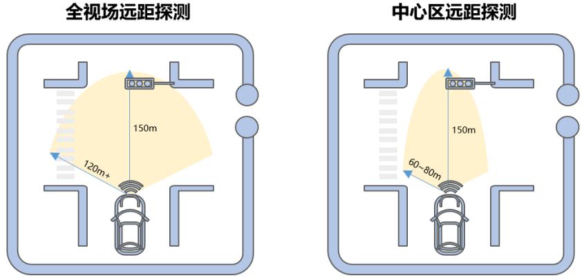 转镜式激光雷达最远探测距离 500 米,针对 10%低反射物的探测距离达到 250m,满足了探测距离的要求。针对十字路口这样的场景,转镜式激光雷达的 FOV 角度大,120°*30°的大角度,能探测垂直于行驶方向道路上的障碍物。因为 FOV 更大,这两款车也都选择了顶置,安置在挡风玻璃上端的一颗激光雷达,就能够探测足够宽范围的场景。