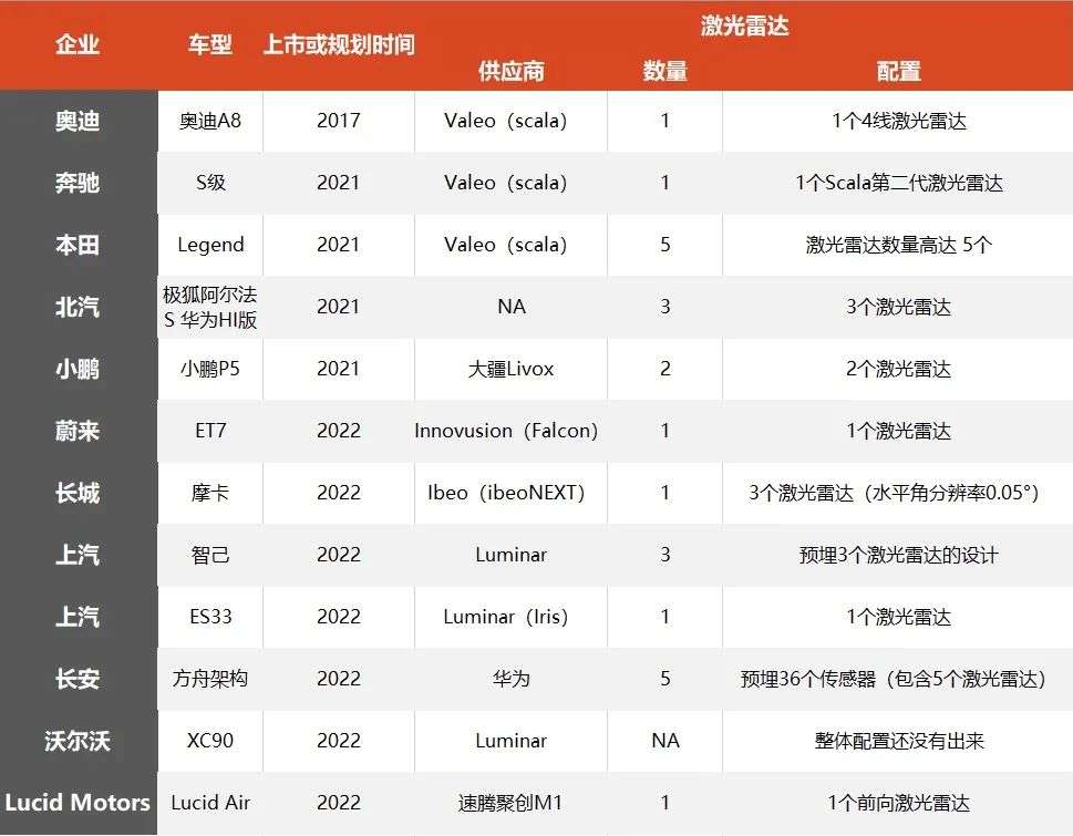 当自动驾驶在量产车上从 L2 级向 L2+迈进,各家车企对软件、硬件的 pk 已经到了白热化阶段。除了依然坚持视觉路线的特斯拉外,今年发布的新车中,没搭载激光雷达都不好意思秀自己的自动驾驶能力,ARCFOX 极狐 阿尔法 S、小鹏 P5、蔚来 ET7、上汽 RS33、宝马 iX、智己 L7 都预告了激光雷达的上车。