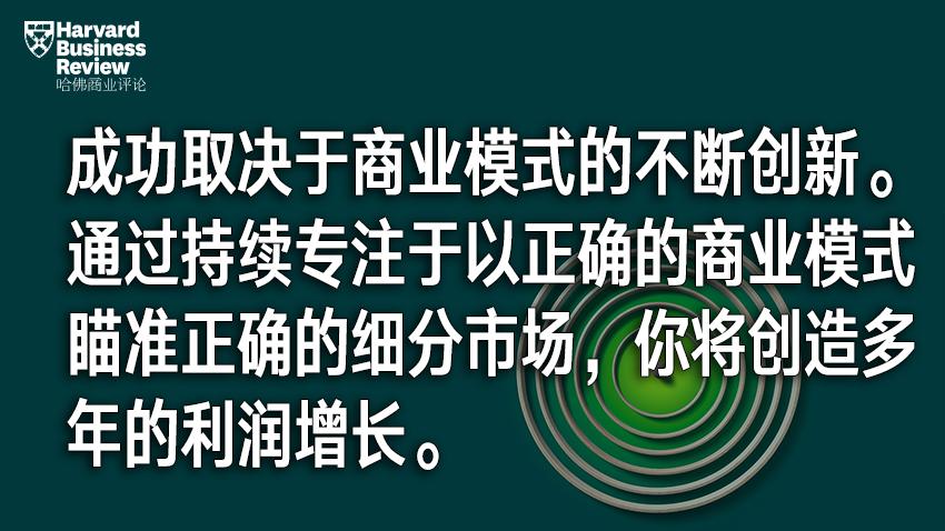 市场在变化,商业模式也必须同步发生变化。成功取决于商业模式的不断创新。通过持续专注于以正确的商业模式瞄准正确的细分市场,你将创造多年的利润增长。