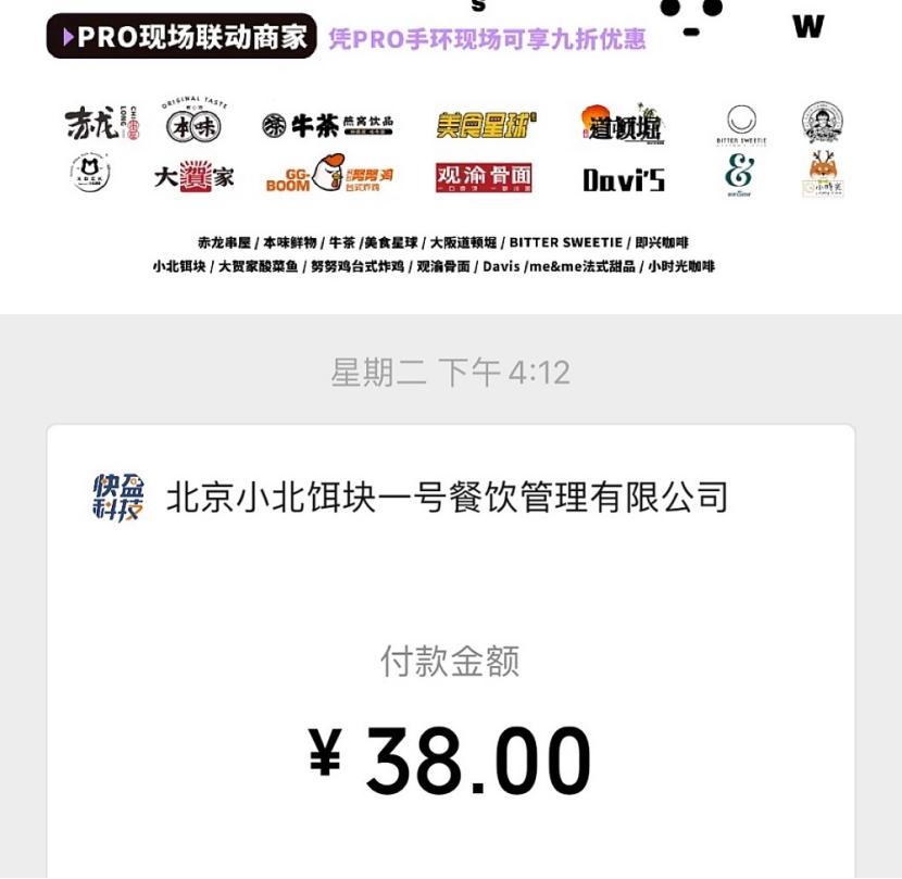 到了现场,排队购买美食。手持PRO票(单日票价720/张)的阿元,去了官方消息上说的合作商家,在询问是不是9折优惠时,“道顿堀”、“小北饵块”等商家工作人员纷纷表示:不是我们家,我们没有合作。即便她再次拿出了大麦PRO票务说明,商家也不认,最终她以原价38元买了一碗米线。她告诉娱sir:多少还是有些不爽,虽然只是几块钱的事,但就是觉得被欺骗了。