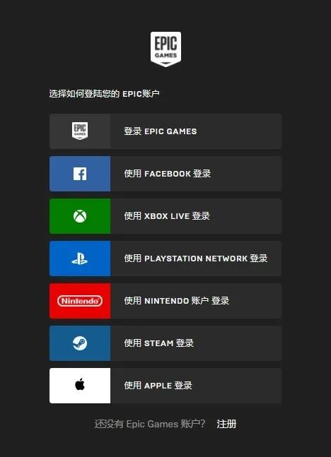 你居然可以使用 Epic 的竞争对手 Steam 的账号登录(Epic 长期公开批评 Steam 对开发 / 发行商抽佣过高),甚至使用跟 Epic 打官司的 Apple 账号登录。这气魄,这胸怀,为了新用户,我 Epic 面子都不要了。