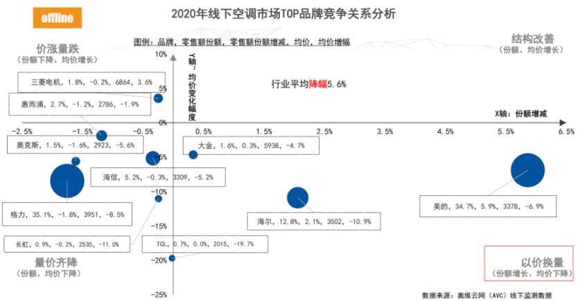 但是,卡萨帝的市场基数还是太小了,在卡萨帝市场份额上升的同时,海尔智家的零售均价,线上市场降幅为14.8%,线下市场降幅为10.9%,也就是说,卡萨帝的成长,还不足以改变海尔空调现阶段的真实市场情况: