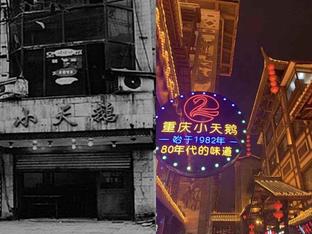 ▲左图为1982年创建的小天鹅,右图为小天鹅重庆仅剩3家店中的1家