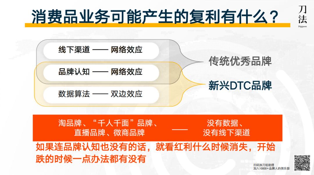 所以在它们在这个涨速很快的阶段,必须把品牌认知的复利做出来,否则红利消失时,真的会跌得非常快。