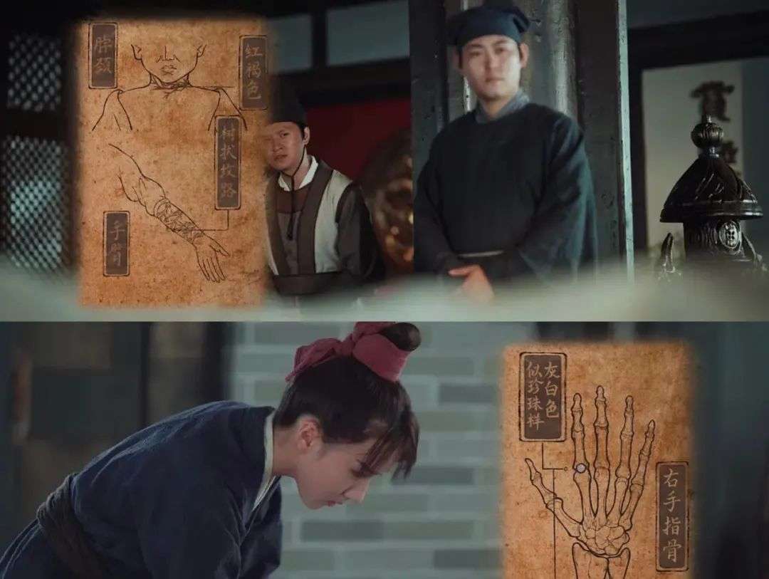 对于悬疑探案剧来说,最重要的剧情逻辑部分在《御赐小仵作》中是借由“仵作”这一职业展现的,女主作为仵作,在验尸的时候条理清晰,逻辑在线,通过尸检一层层抽丝剥茧,还原死者死亡真相,关键剧情不单纯靠台词呈现,在尸检过程中,《御赐小仵作》会画面上辅以相应的插画,方便观众理解。