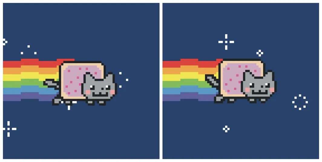 克里斯· 托雷斯(Chris Torres),《彩虹猫》动图里两帧画面,2011.