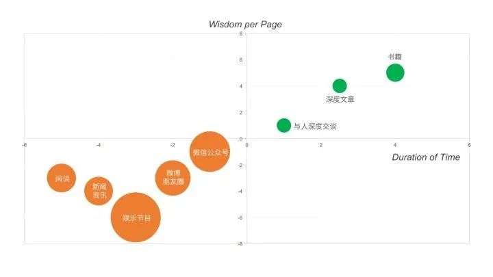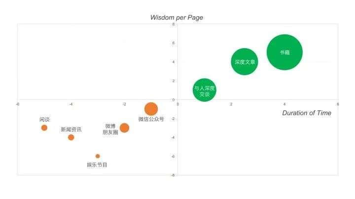我们能接触到的所有信息源,总共可以归为上面这几类。那么哪些这才是最有价值的信息渠道?知乎答主@刘十九分享了评估输入信息价值的两个维度: