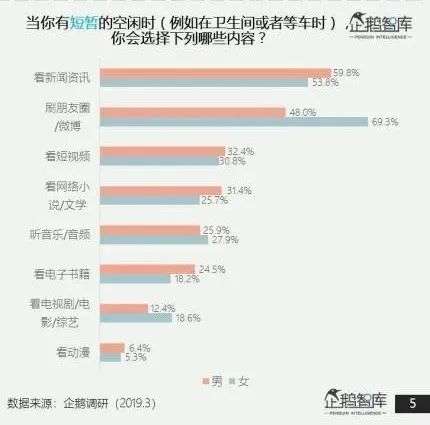 根据《泛内容消费趋势报告》,当有短暂的空闲时间时,网民在手机上最习惯的三个行为是看新闻资讯,刷朋友圈/微博,以及看短视频。