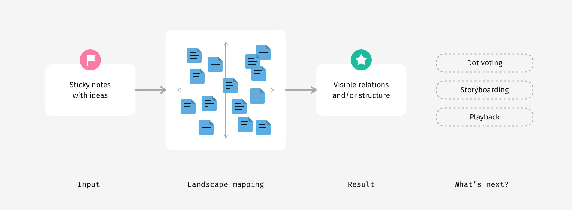 景观地图:主持人跟参与者共同建立一系列阶段,并过滤出重复项。