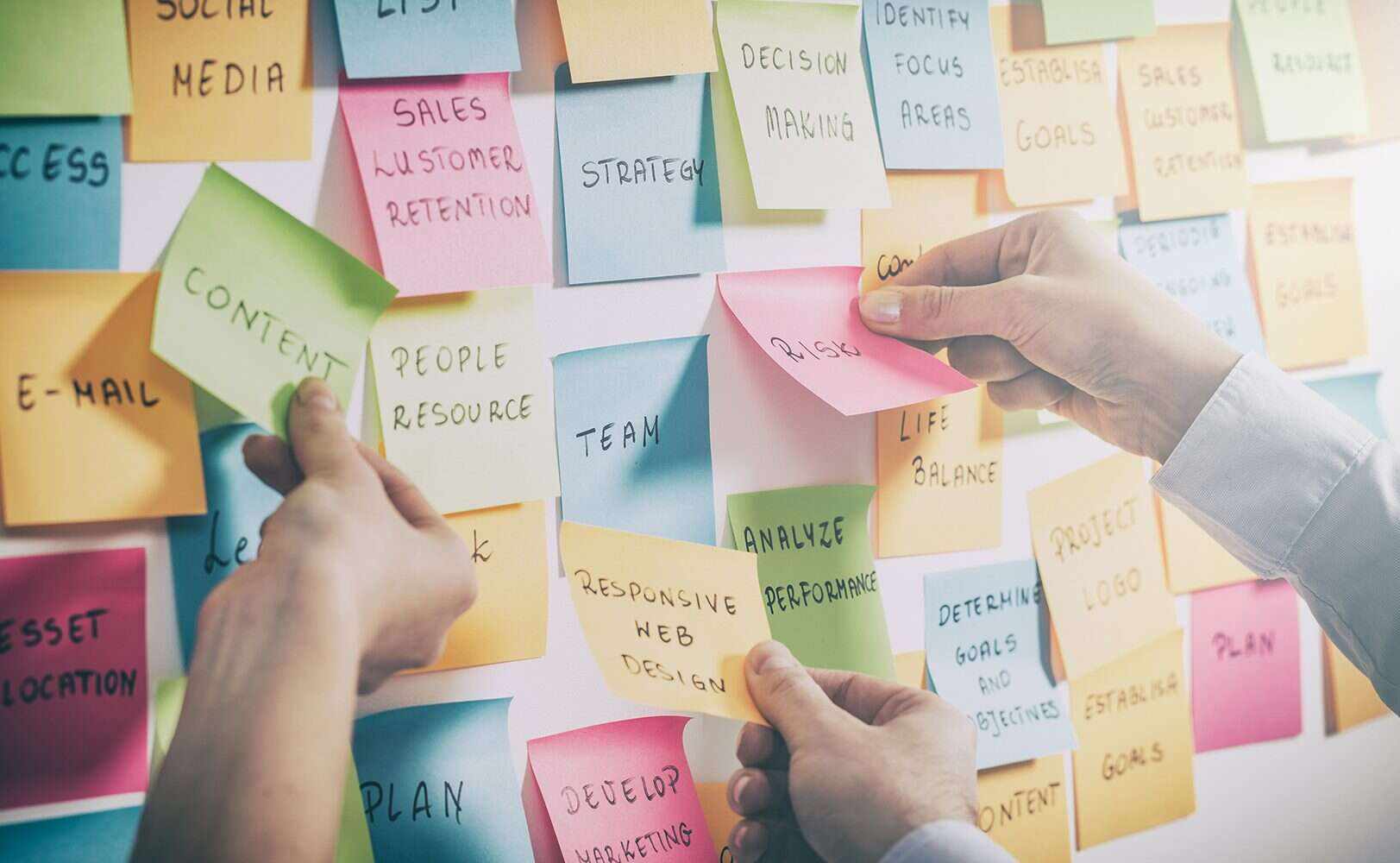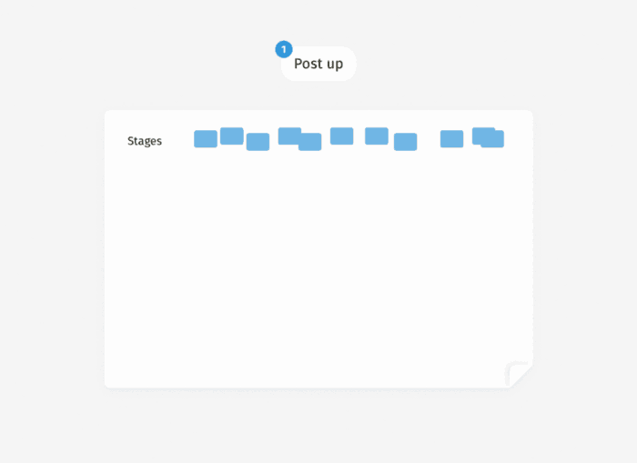 张贴:参与者写下有关解决最受关注的痛点的想法,并将注释粘贴在相应的阶段中。