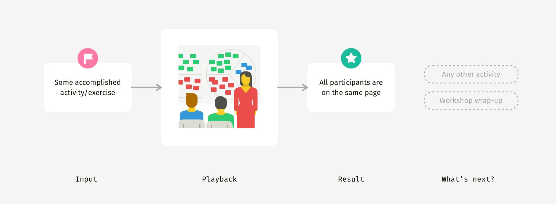 任何一个工作坊都有自己的结构。每次主持人要求参与者做不同的事情时,其实是在开始进入新阶段,新的活动。基本活动是“原子”,是工作坊的基本组成部分。尽管NNGroup已经做出了很好的描述,但我看不出温故知新并扩展一下知识有什么错。