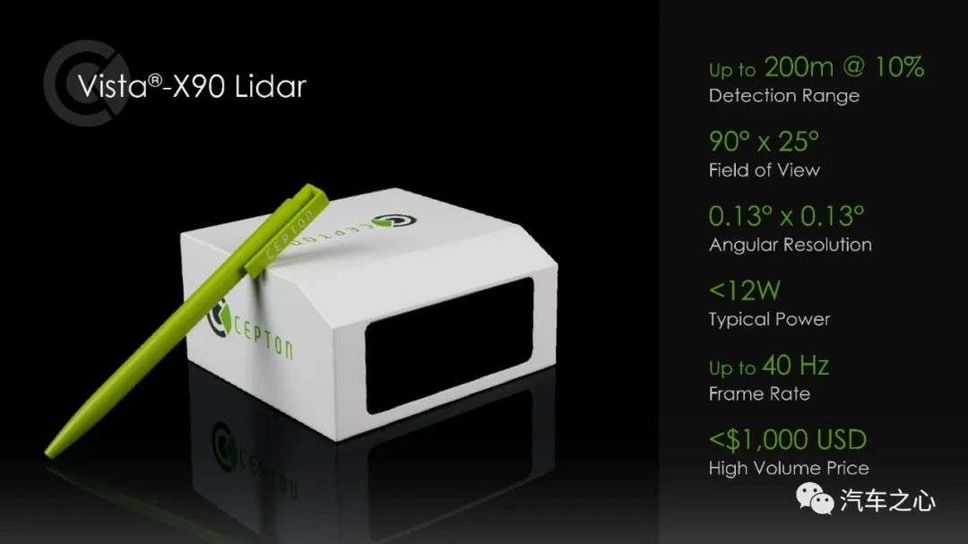 Cepton 的 Vista-X90 用上了独有的微动技术(MMT),以实现对视场的无反光镜高速扫描。