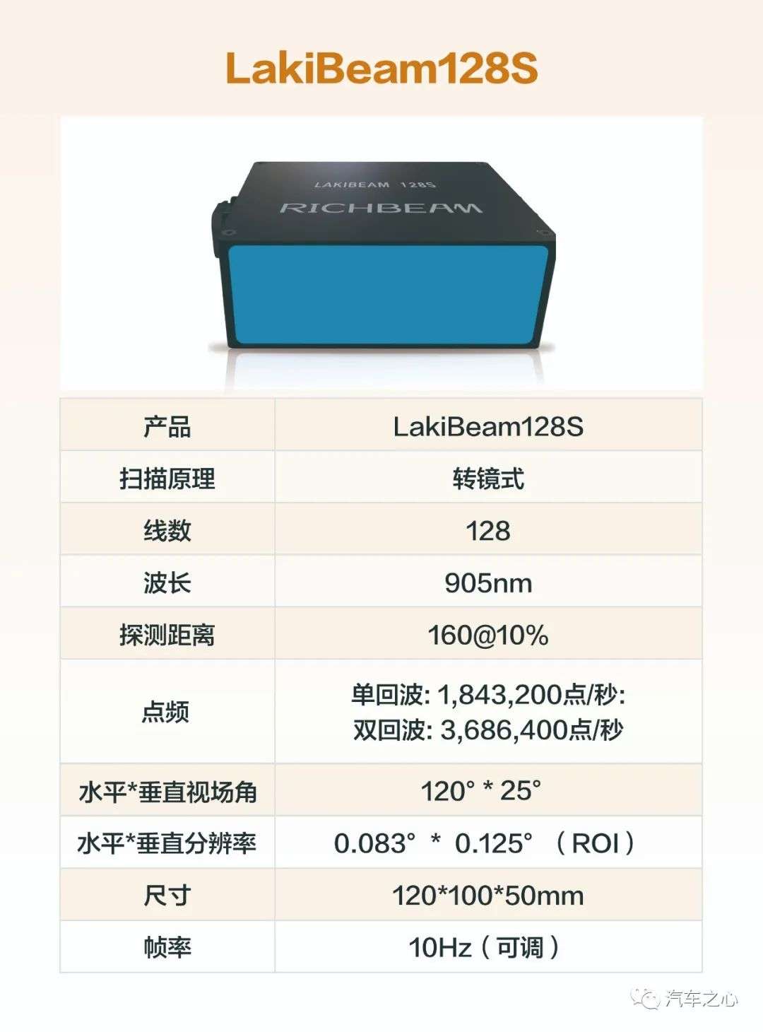 比如锐驰智光为车企定制的 LakiBeam128S 产品: