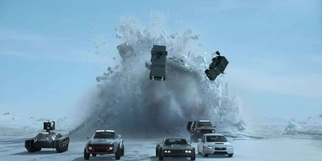 结尾,赛弗又操纵了 潜水艇 ,冰面飙车已经迥异于此前的公路飙车环境。冰面下,一架巨大的潜水艇破冰而出,并发射鱼雷进行攻击,奇观化愈发离谱。