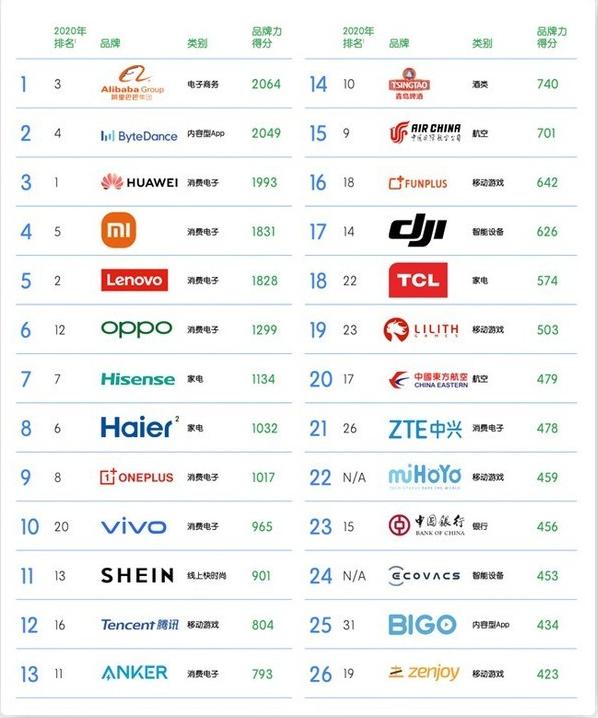 尽管今年的50强受到了来自全球形势的影响,还将新兴市场纳入考量,但各个品类对总体品牌力的贡献仍相对稳定,消费电子(33%)和移动游戏(15%)依然占据最大份额。