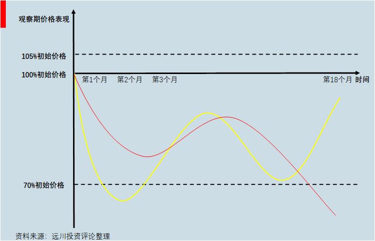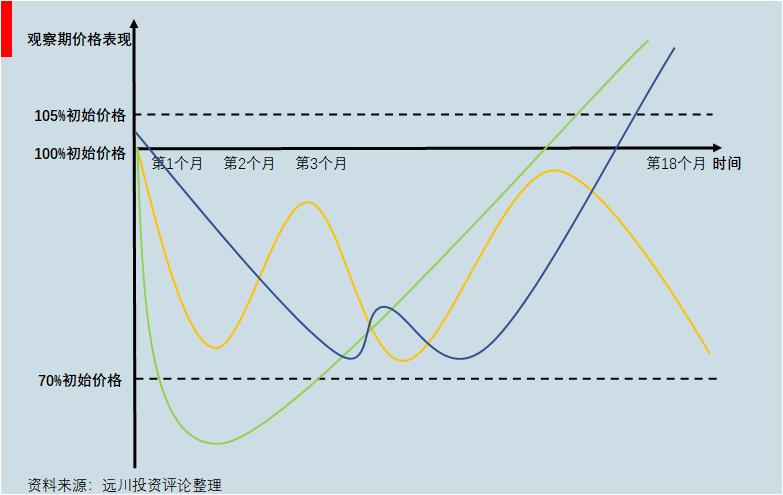 如果这个股票直接向上涨,突破了105元,机构就直接连本带息的把钱还给雪球投资者。而这个股票在借钱的时间范围内,没跌破70元,机构就向投资者支付一开始约定好的利息。