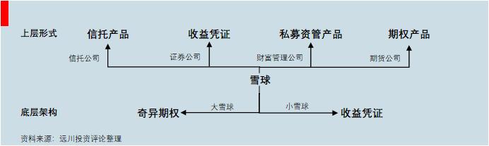 市场上现存的雪球产品主要以收益凭证、信托产品、资管产品以及期权产品这几种形式存在,认购金额均为100万元以上。
