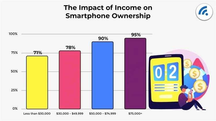 了解这一群体中存在的差异有助于更好地理解这些数字的含义,即收入(部分受到教育的影响)是在美国购买智能手机的最大的影响因素。