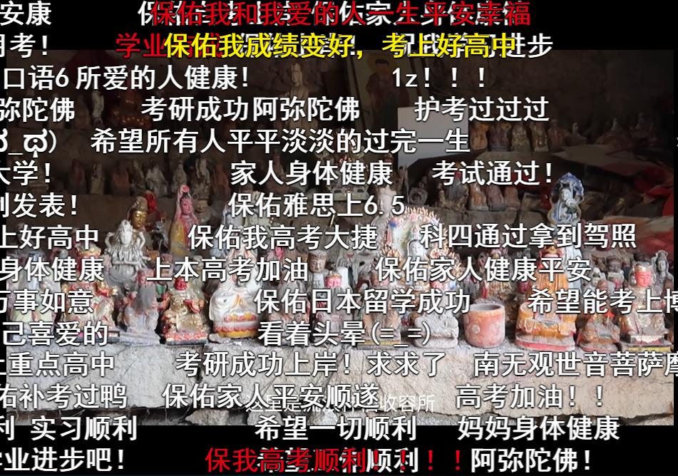粉丝们将「考研上岸」「实习顺利」「家人平安」「阿弥陀佛」打在屏幕上,也被「流浪神仙收容所」这个名字打动:「被遗弃的神明也有居所」、「城市里几乎没有一个地方是你可以随意放空自己的,公交车会到站,图书馆会关门,天黑之前就得下山了,这个城市拥挤饱和得让人窒息」。