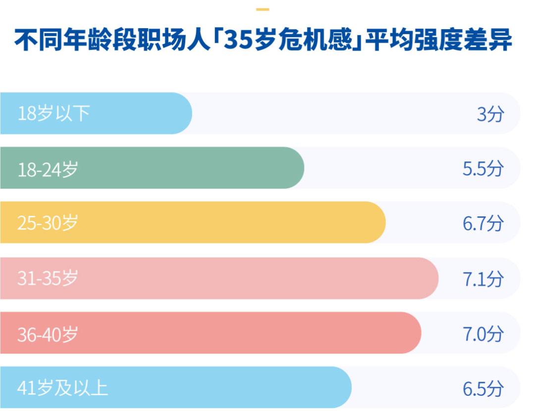 此外,20多岁的年轻人对即将到来的「35岁」也充满了焦虑。数据显示,25-30岁的年轻人平均危机值也达到了6.7分。