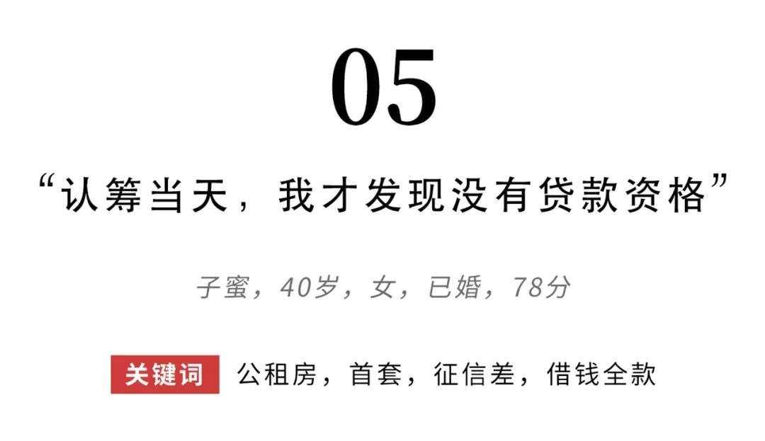 有人孤注一掷卖掉住房,摇号3次还未成功;有人自嘲:“作为工薪阶层,竟也能体会一次,何为断资金链。”有人拿着全款,却被保安拦在门外;有人买房整整7年,却次次踏空,与女方家庭吵得不可开交;有人认筹当天,才发现自己无法贷款;有人住了一辈子宿舍,但为了养老,决定买房……