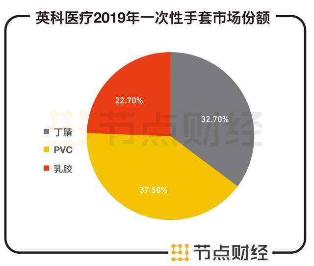 按照材料分类,一次性手套主要包括丁腈、PVC及乳胶三类,英科医疗生产的是前两类,也是市场份额最大的两类。按2019年的销量计算,PVC手套的市场份额达到37.5%。其次是丁腈手套,为32.7%。乳胶手套的市场份额最小,为22.7%。