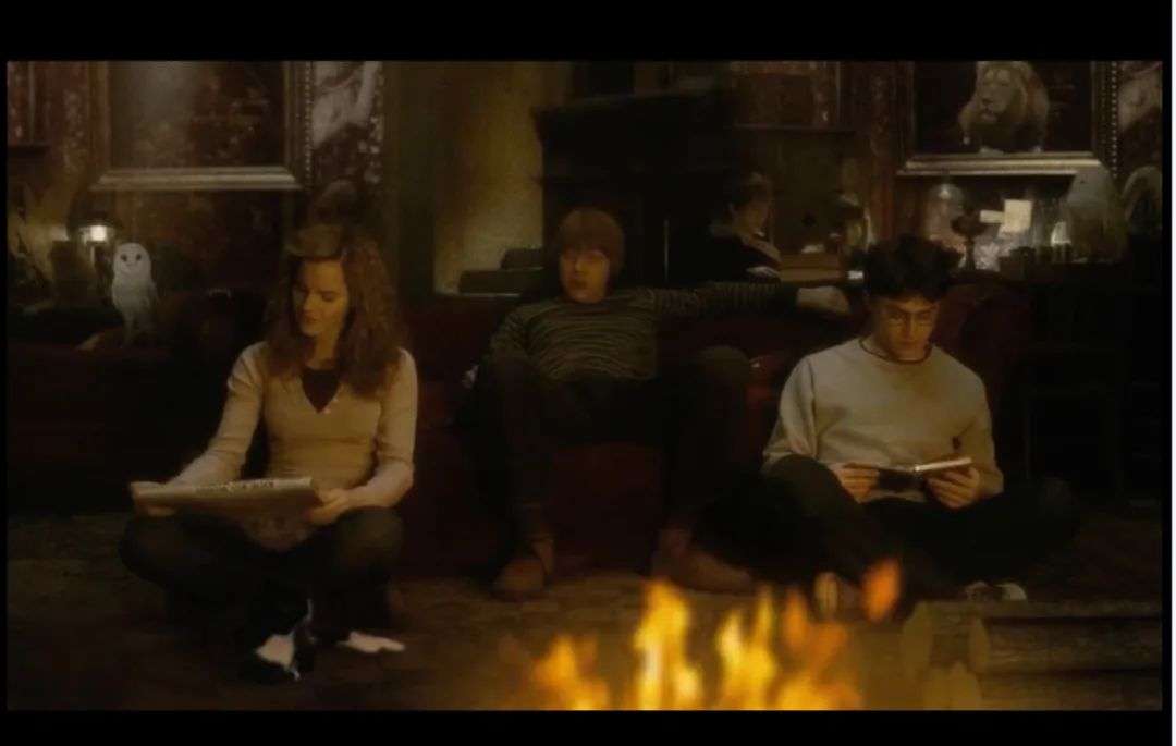 有时是在休息室,哈利波特、赫敏、罗恩就坐在你面前看书,耳边是壁炉里柴火燃烧的滋啦声;