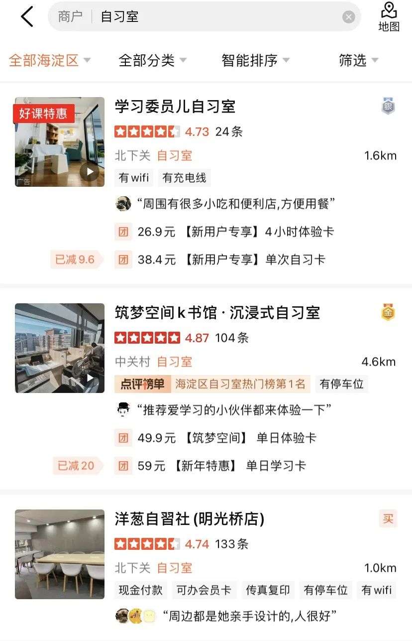 还有的自习室,利用自身带点儿焦虑的的学习氛围,为留学机构、考研考公补习班做投放引流,以此赚点儿外快。
