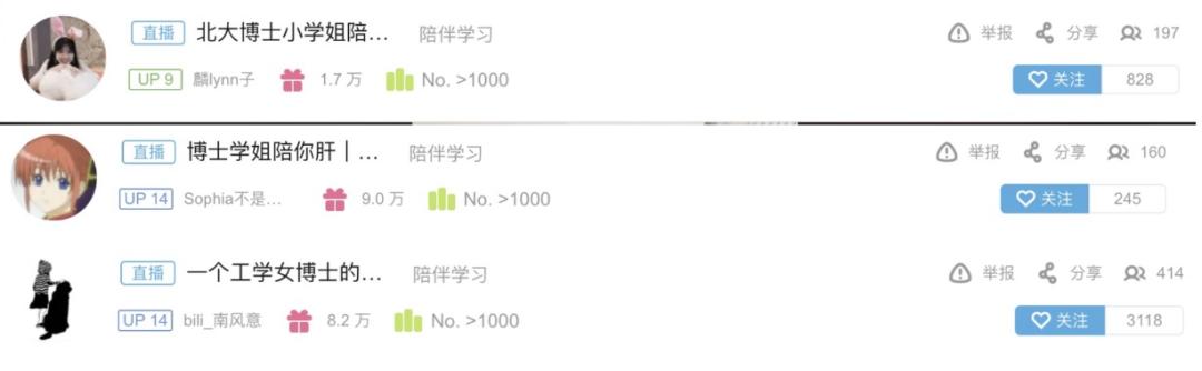 但是在B站陪伴学习区,只要足够自律或优秀,气氛到位了,就会有粉丝关注你,有时候这学习气氛甚至都不需要人类来营造。