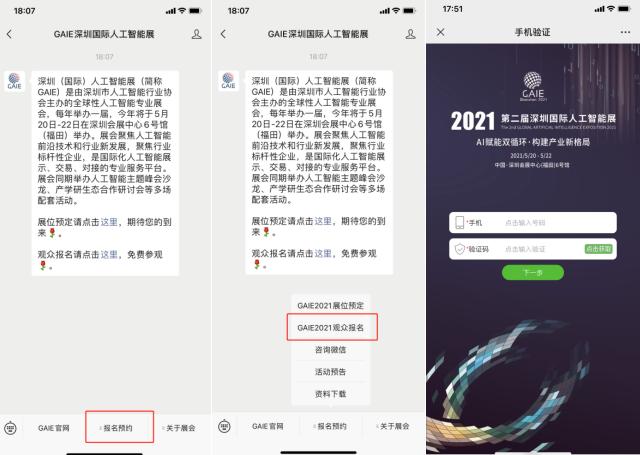 进入上面的公众号,找到子栏目“GAIE2021观众报名”,输入手机号码,即可找到二维码。