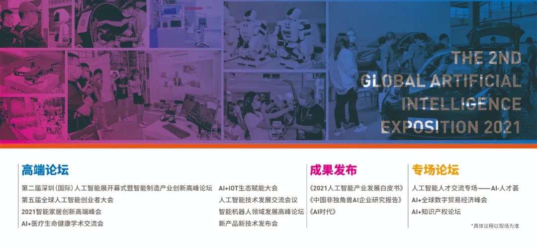 另外,展会还有数十场“人工智能+”方向新产品新技术发布会,涉及智慧城市、智能交通、智能医疗、智能金融、智能安防、智能网联汽车等领域,科创集团、睿博天米科技(深圳)有限公司、北京云测信息技术有限公司、深圳市威尔电器有限公司、宁波美象科技等企业将进行产品发布。同时,展会还将进行《2021人工智能产业发展白皮书》和《AI时代》的发布。更多精彩,敬请期待!